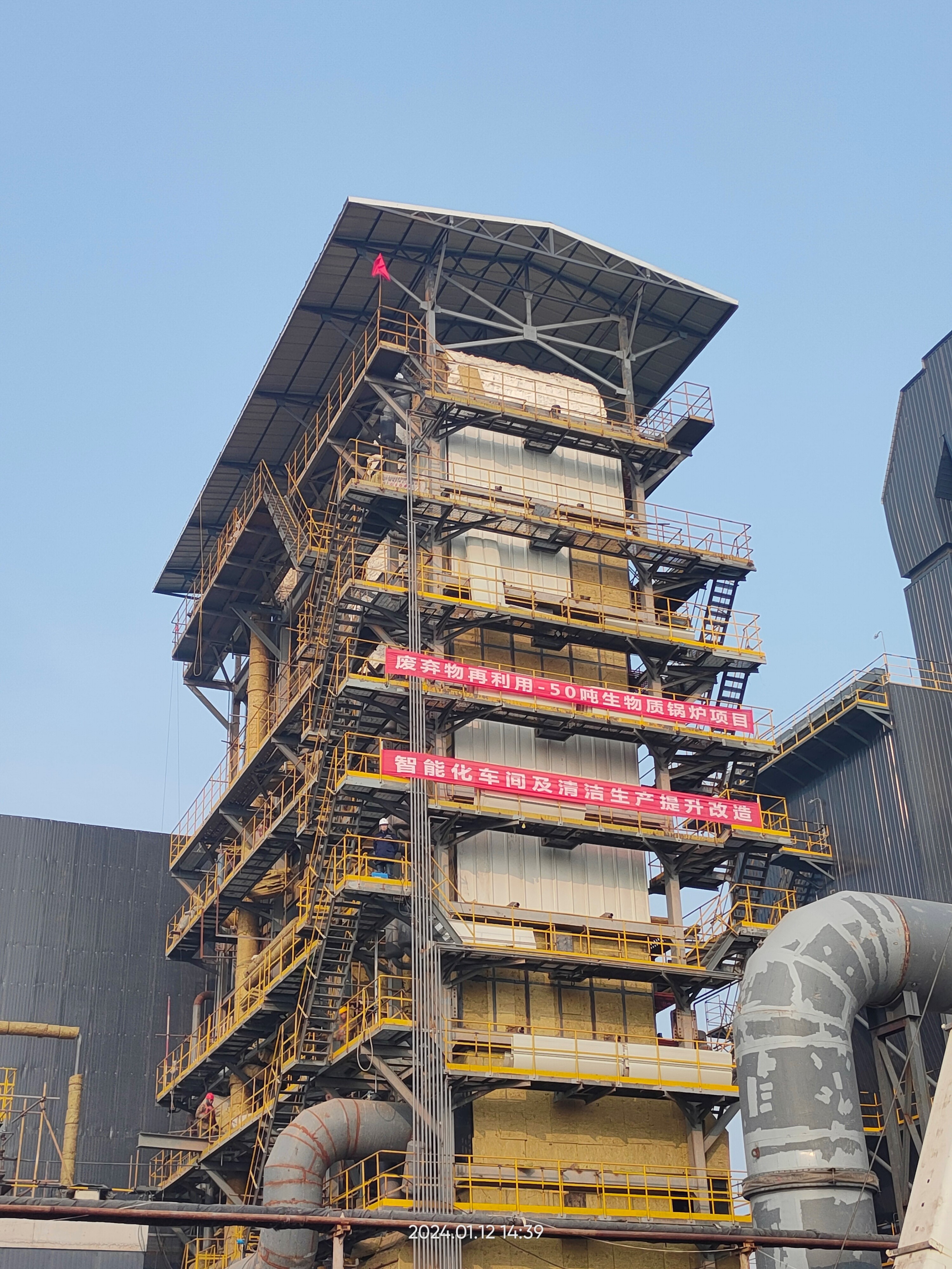 2024年1月11日,位于山東省德州市寧津經(jīng)濟開發(fā)區(qū)的50t/h純燃糠醛渣臥式循環(huán)流化床鍋爐項目建設“進度條”再刷新。上午10時08分,伴隨著禾潔項目現(xiàn)場起重機的轟鳴聲和陣陣炮竹聲,鍋爐防雨棚被緩緩平穩(wěn)吊起;10時28分,在現(xiàn)場作業(yè)人員通力配合下,防雨棚被準確安裝在既定位置。至此,鍋爐主體安裝全部順利完成。