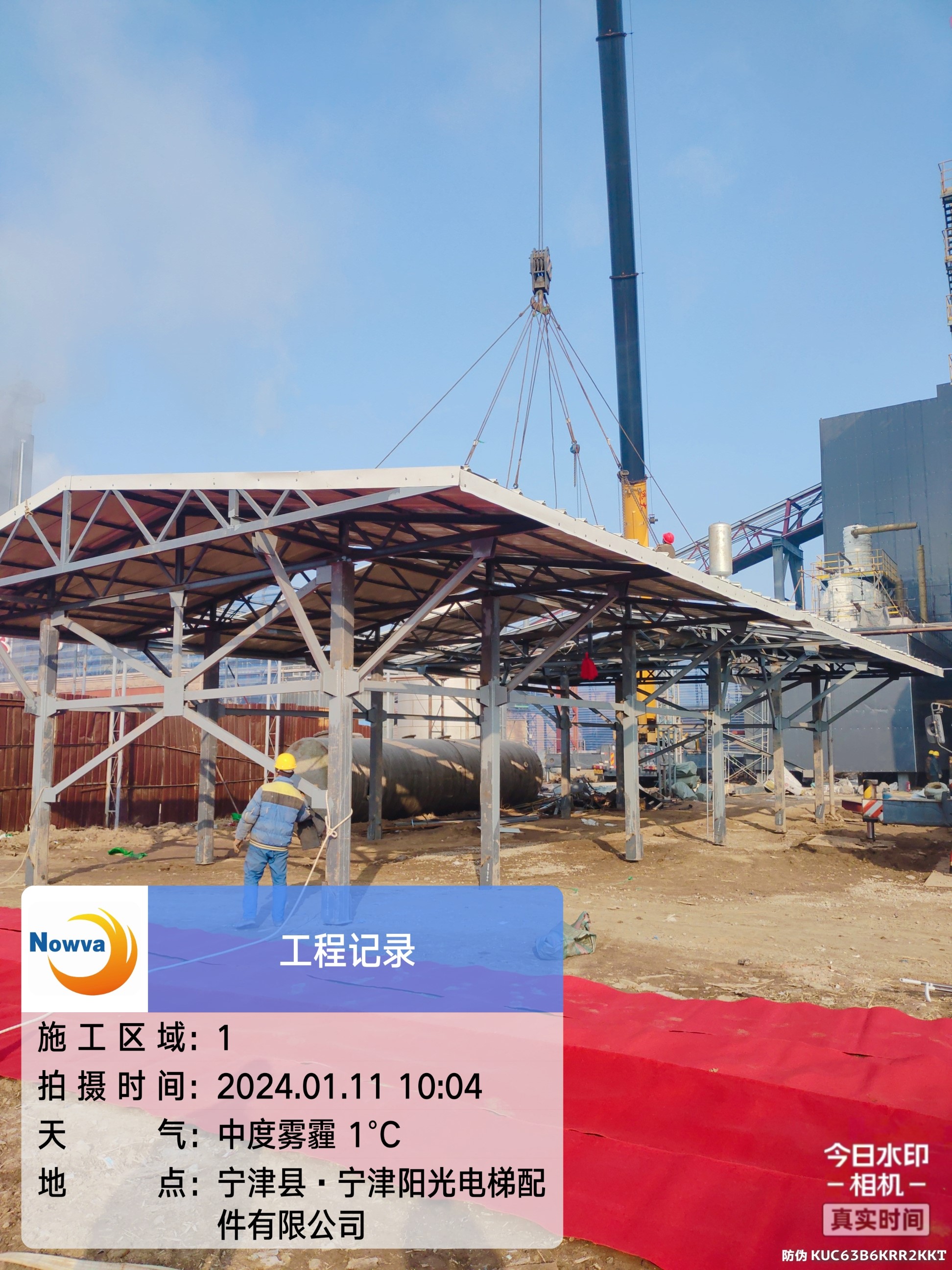 項目業(yè)主寧津禾潔生物科技有限公司董事長李風光參加吊裝儀式,業(yè)主方和施工方現(xiàn)場數(shù)十人共同見證了禾潔項目順利封頂。