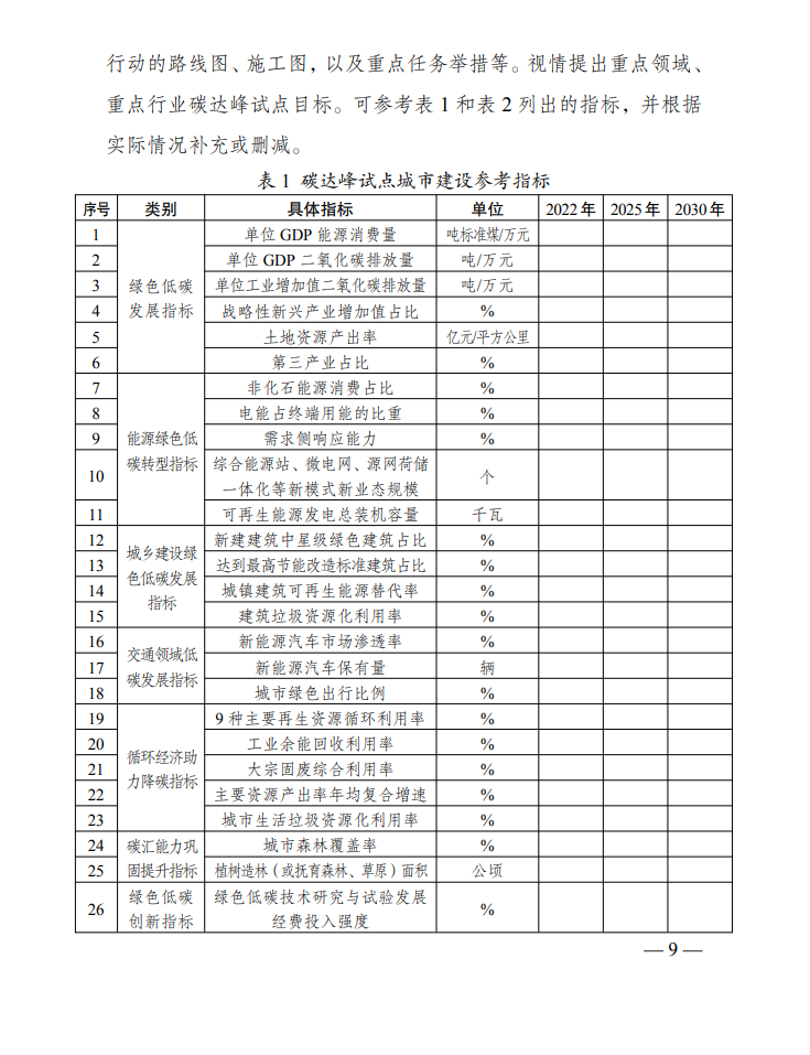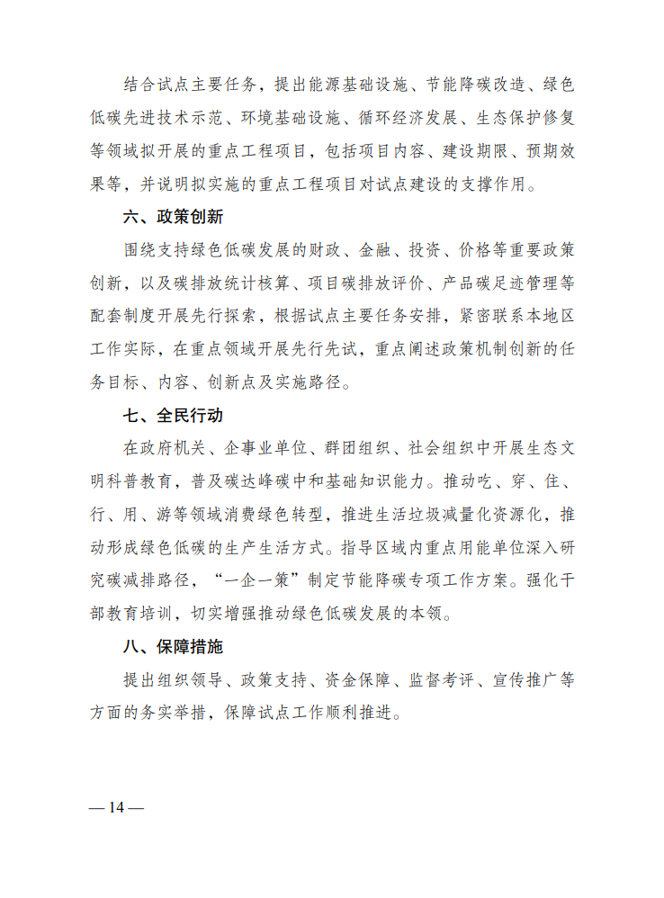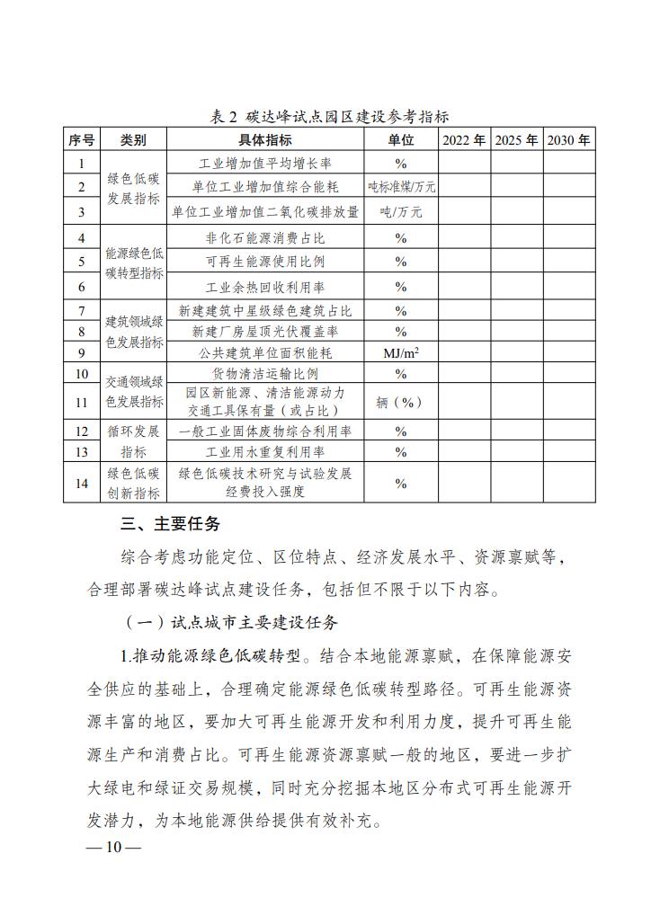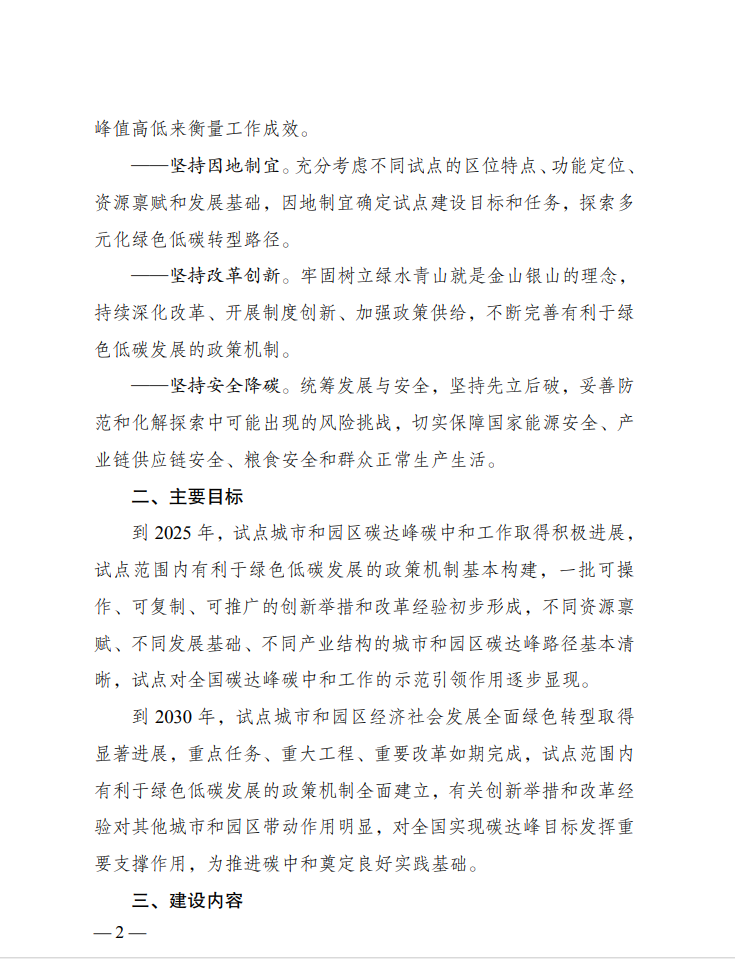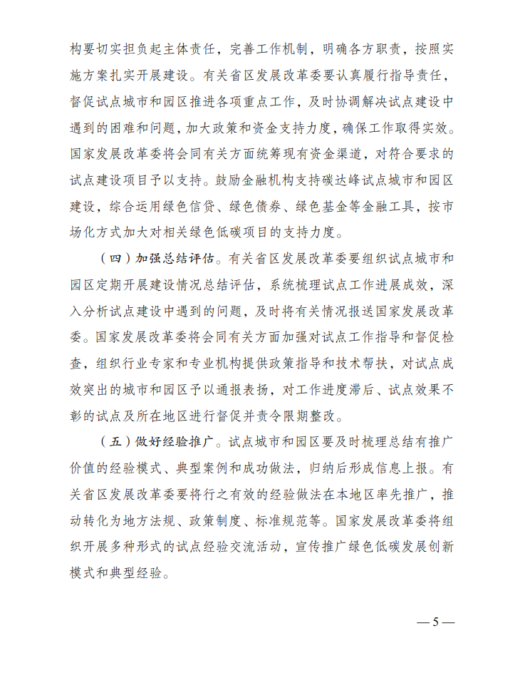 2023年10月20日,國家發(fā)改委印發(fā)《國家碳達峰試點建設(shè)方案》?!斗桨浮诽岢觯?strong style="box-sizing: border-box;">在全國范圍內(nèi)選擇 100 個具有典型代表性的城市和園區(qū)開展碳達峰試點建設(shè),聚焦破解綠色低碳發(fā)展面臨的瓶頸制約,激發(fā)地方主動性和創(chuàng)造性。首批國家碳達峰試點名額已安排35個,涉及省份包括河北、山西、內(nèi)蒙古、遼寧、黑龍江、江蘇、浙江、安徽、山東、河南、湖北、湖南、廣東、陜西、新疆。