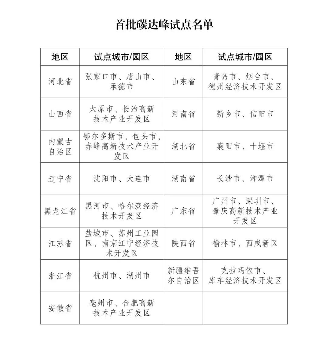 印發(fā)首批碳達(dá)峰試點(diǎn)名單的通知