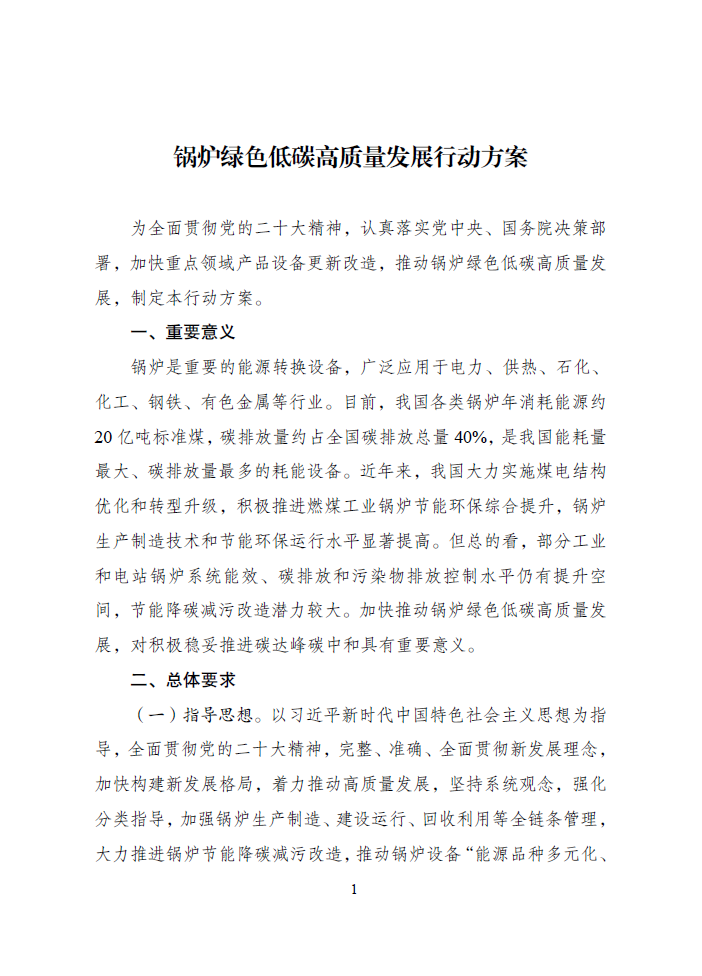國(guó)家發(fā)展改革委等部門關(guān)于印發(fā)《鍋爐綠色低碳高質(zhì)量發(fā)展行動(dòng)方案》的通知